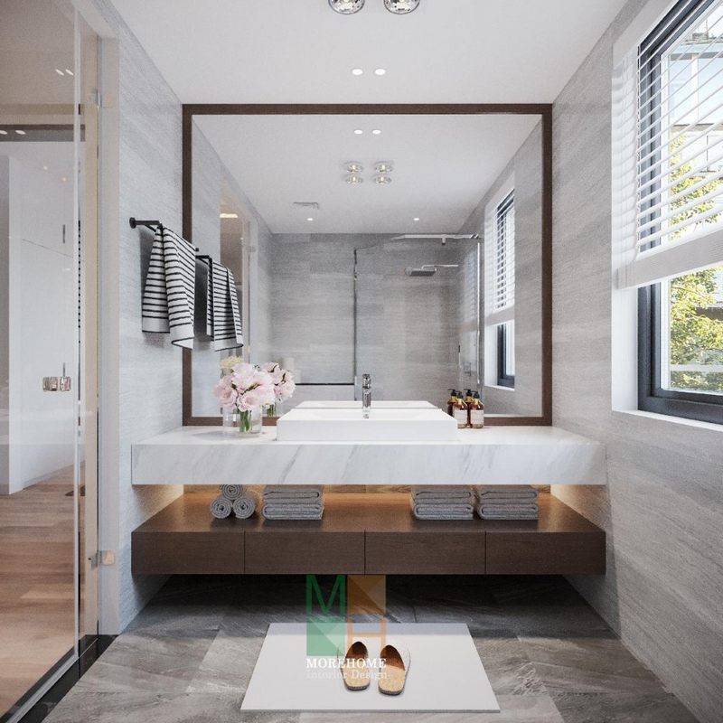 Gương phòng tắm treo tường khung gỗ hình chữ nhật cung cấp cho gia chủ những tiện nghi chuẩn bị trước khi ra ngoài bằng cách phản chiếu lại hình ảnh của họ.